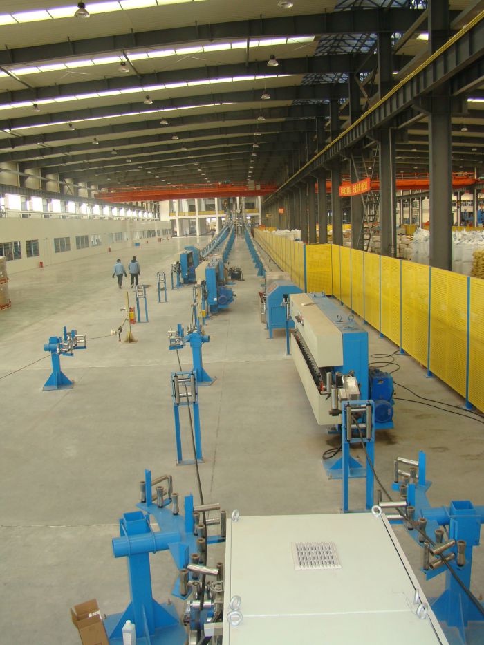 本生產(chǎn)線為氮?dú)饨宦?lián)、水冷卻方式干法交聯(lián)生產(chǎn)線,適用于生產(chǎn)6-35kV,絕緣厚度在12mm以下,電壓等級(jí)交聯(lián)聚乙烯絕緣電力電纜的纜芯。